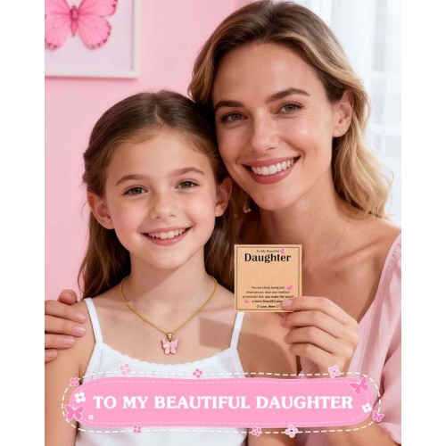 - Daughter Gifts from Mom: This pink butterfly necklace is a heartfelt gift from mom to daughter. Let her know that "you make the world a more beautiful place"