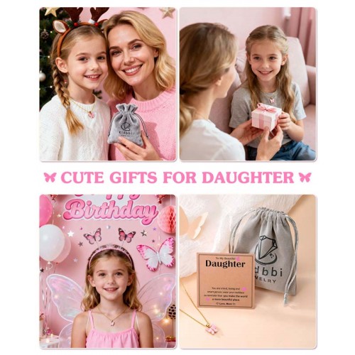 Kidbbi Valentines Day Gifts for Daughter from Mom To My Daughter Necklace Birthday Chritsmas Gifts X-N-Pink Butterfly-Daughter-001