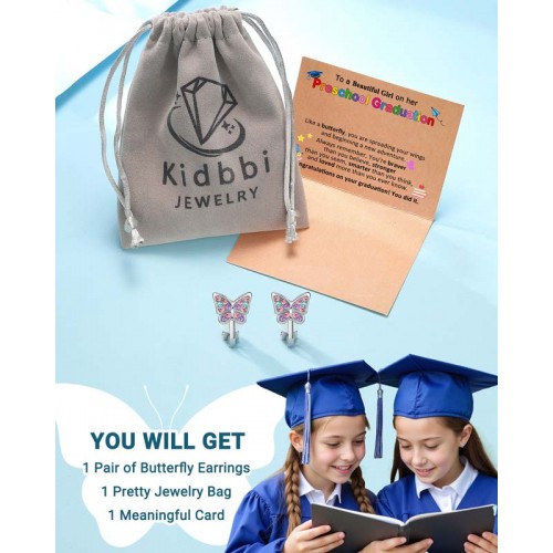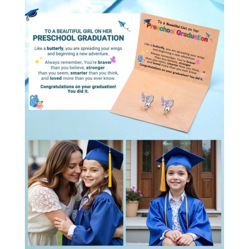 KIDBBI Preschool Graduation Gifts for Girls Kids Pre K Prek Graduation Earrings Class of 2025 Graduate Grad Decorations X-CE-Color Butterfly-Preschool-04
