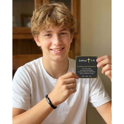 - Christian Gifts for Boys & Men – A meaningful Bible Verse bracelet that encourages strength and courage, making it a thoughtful religious gift for son, grandson, brother, teen boys, or men