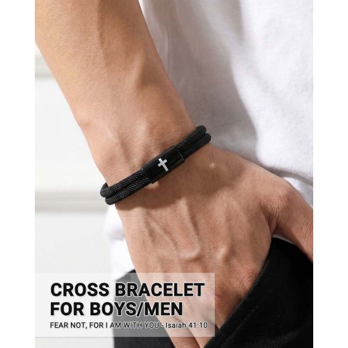 Kidbbi Cross Bracelet for Men Kids Jesus Religious Christian Easter Gifts Teens Teenage 8 12 14 16 Adults Z-Engraved Cross-41:10-B03