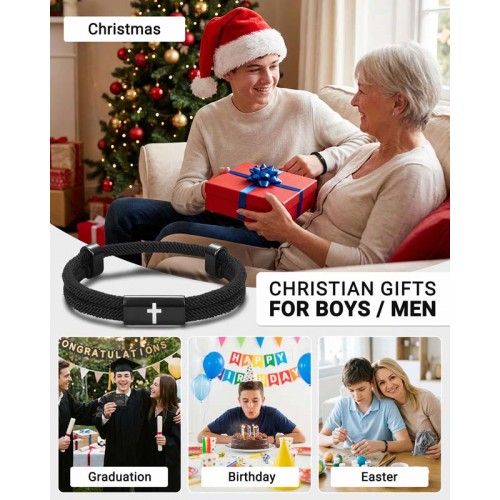- Christian Gifts for Boys & Men – A meaningful Bible Verse bracelet that encourages strength and courage, making it a thoughtful religious gift for son, grandson, brother, teen boys, or men