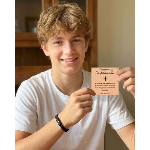 Kidbbi Confirmation Gifts for Teen Boys Teenage Catholic Confirmation Sponsor Gift Decorations Cross Bracelet Z-1 9 Cross-Confir-B01